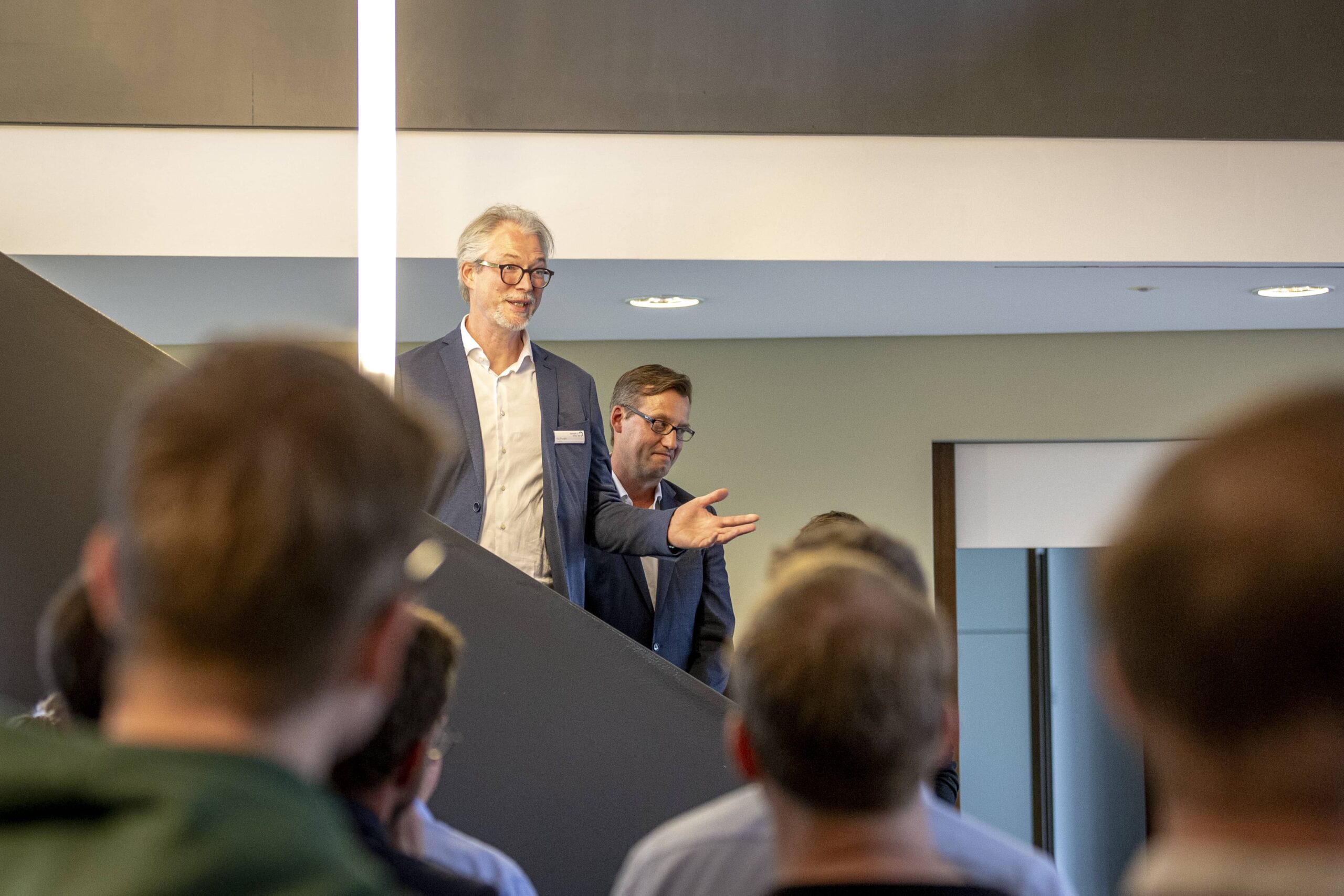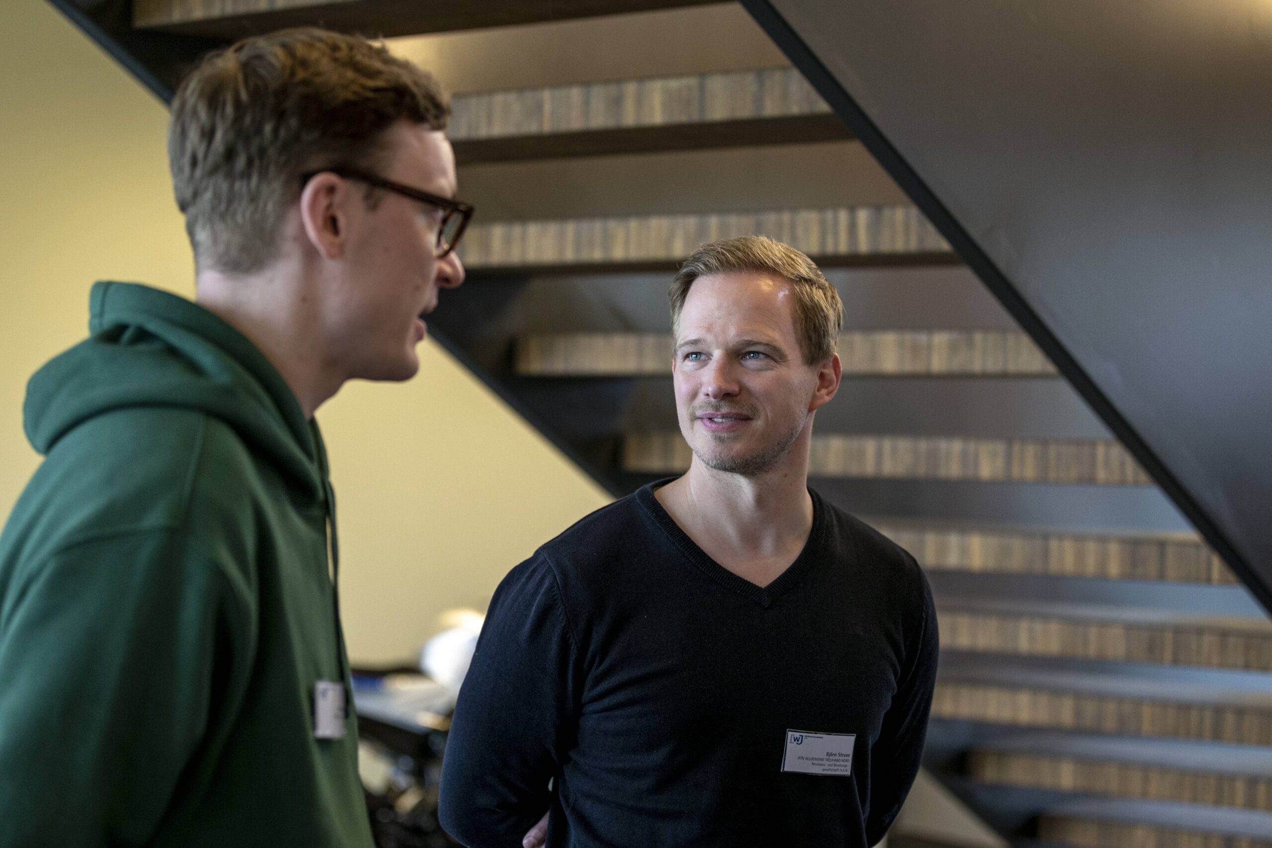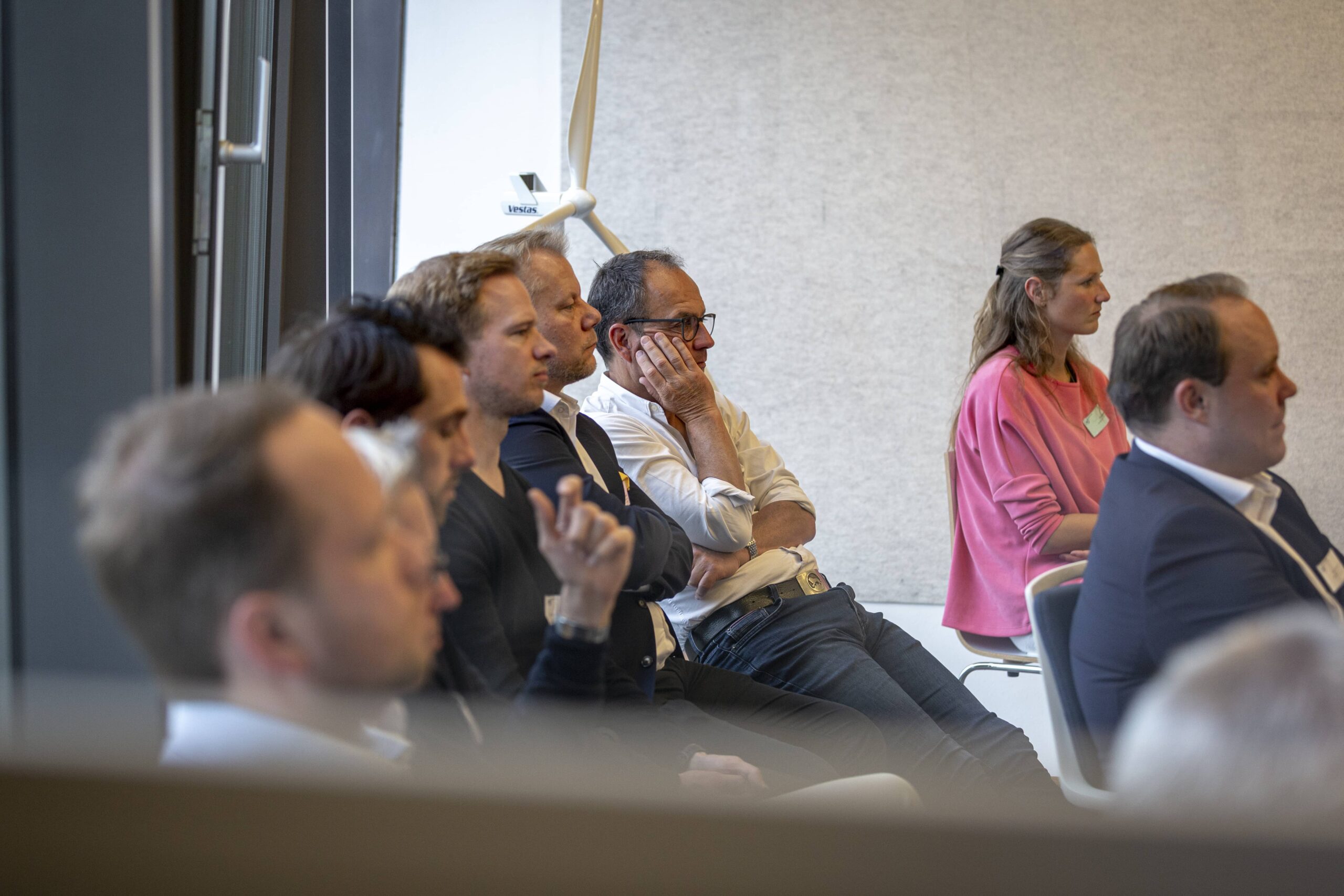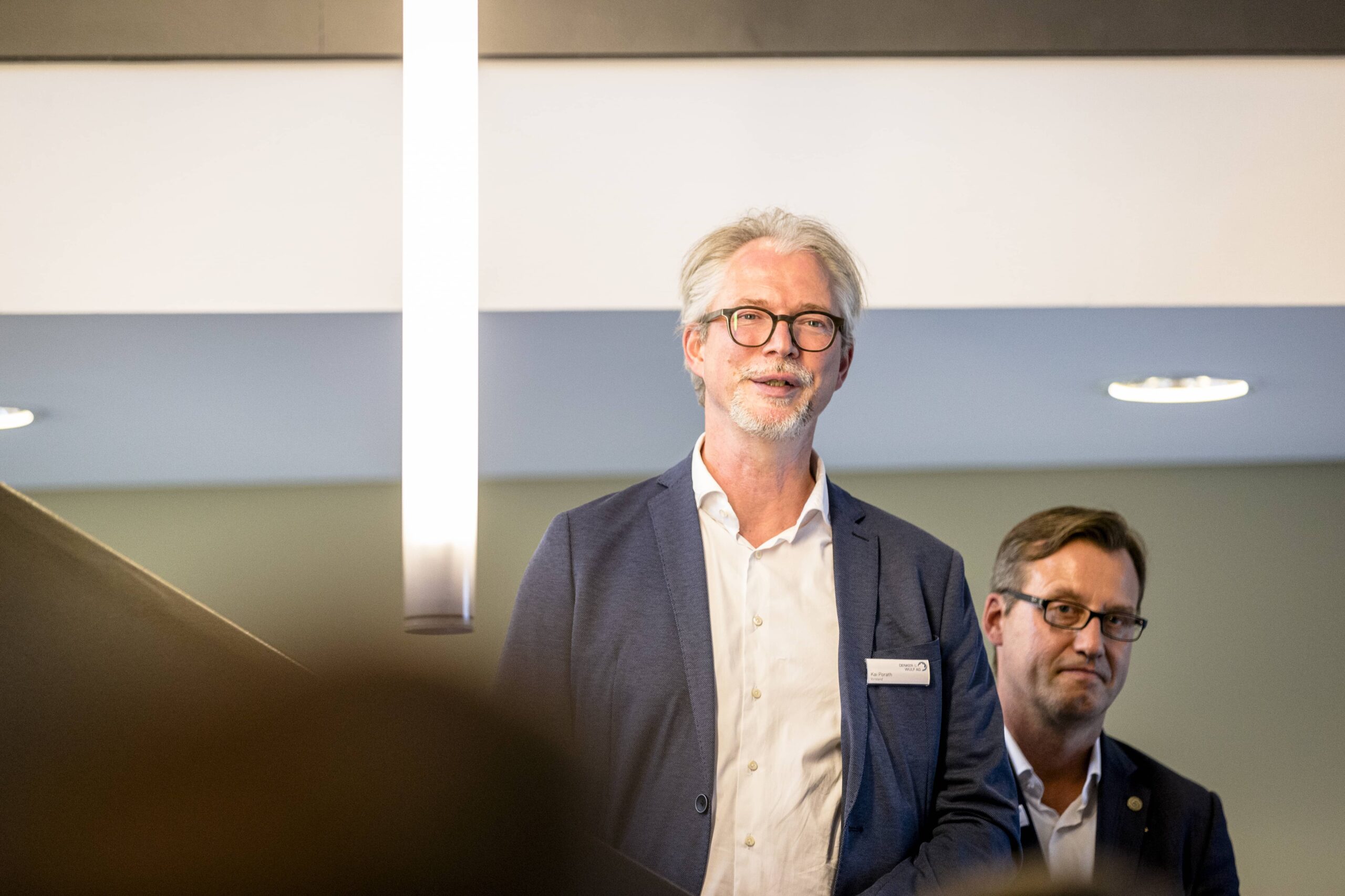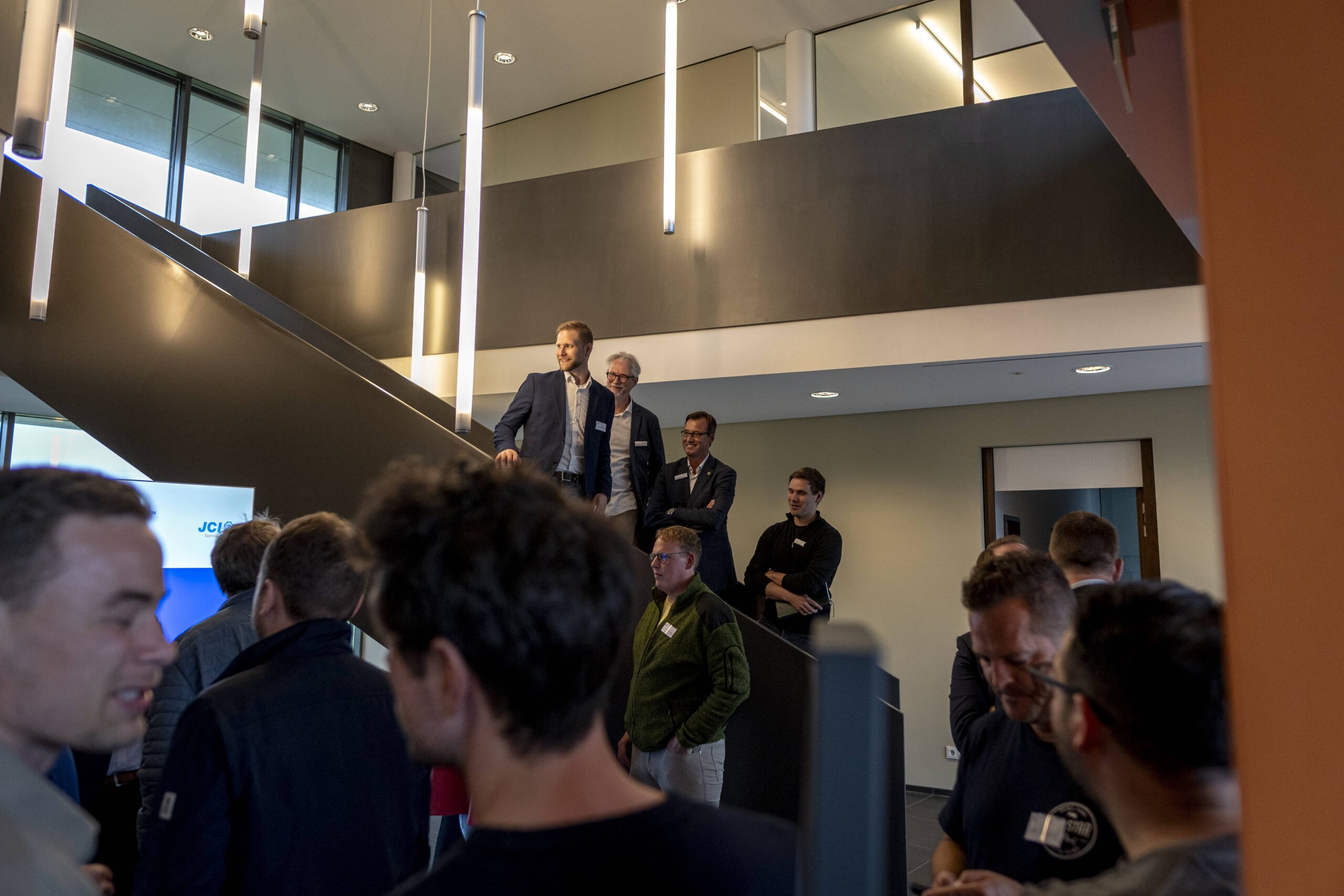 Nach einem herzlichen Empfang wurde den Wirtschaftsjunioren zunächst die Unternehmenshistorie und das kontinuierliche Wachstum der Denker & Wulf AG in einer spannenden Präsentation vorgestellt. Im Anschluss wurden die Geschäftsfelder der Windparkprojektierung, der Photovoltaikanlagen und einige innovative Projekte detailliert thematisiert. Speziell im Bereich der Förderung und Leistungsfähigkeit von Windparks entstanden zahlreiche interessierte Nachfragen, sodass sich ein interaktiver Vortrag entwickelte, in dem die präsentierten Zahlenwerke und Standortfaktoren von Windparks ausführlich analysiert und diskutiert wurden.