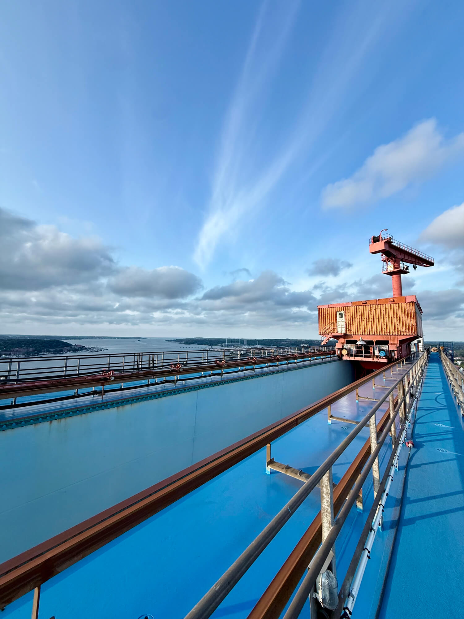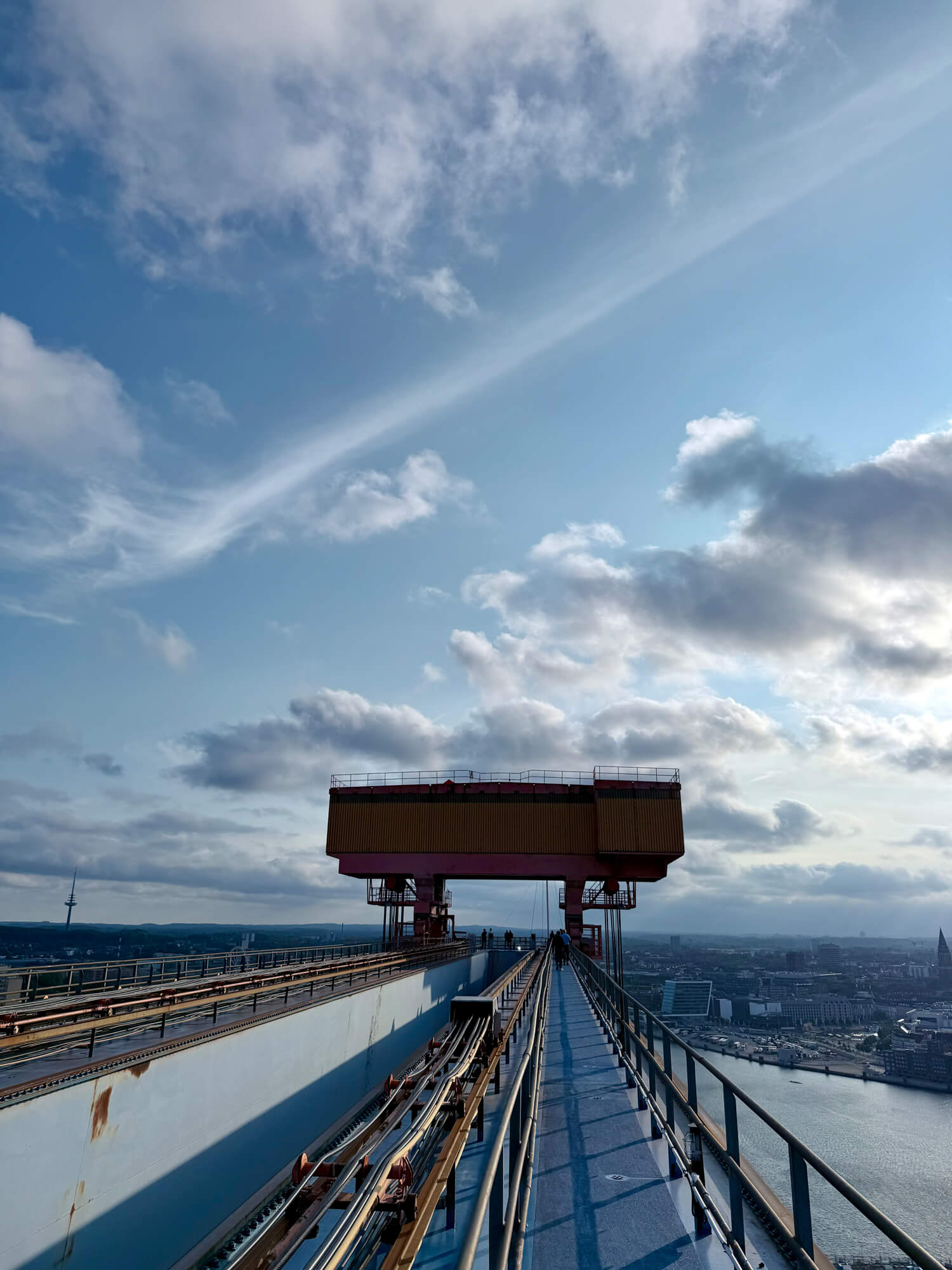 Das absolute Highlight des Abends war der Aufstieg auf den ikonischen Kran, der mit einer Höhe von ca. 100 Metern weit über Kiel thront und von dem aus wir einen atemberaubenden Blick über die Förde und die Stadt genießen konnten.